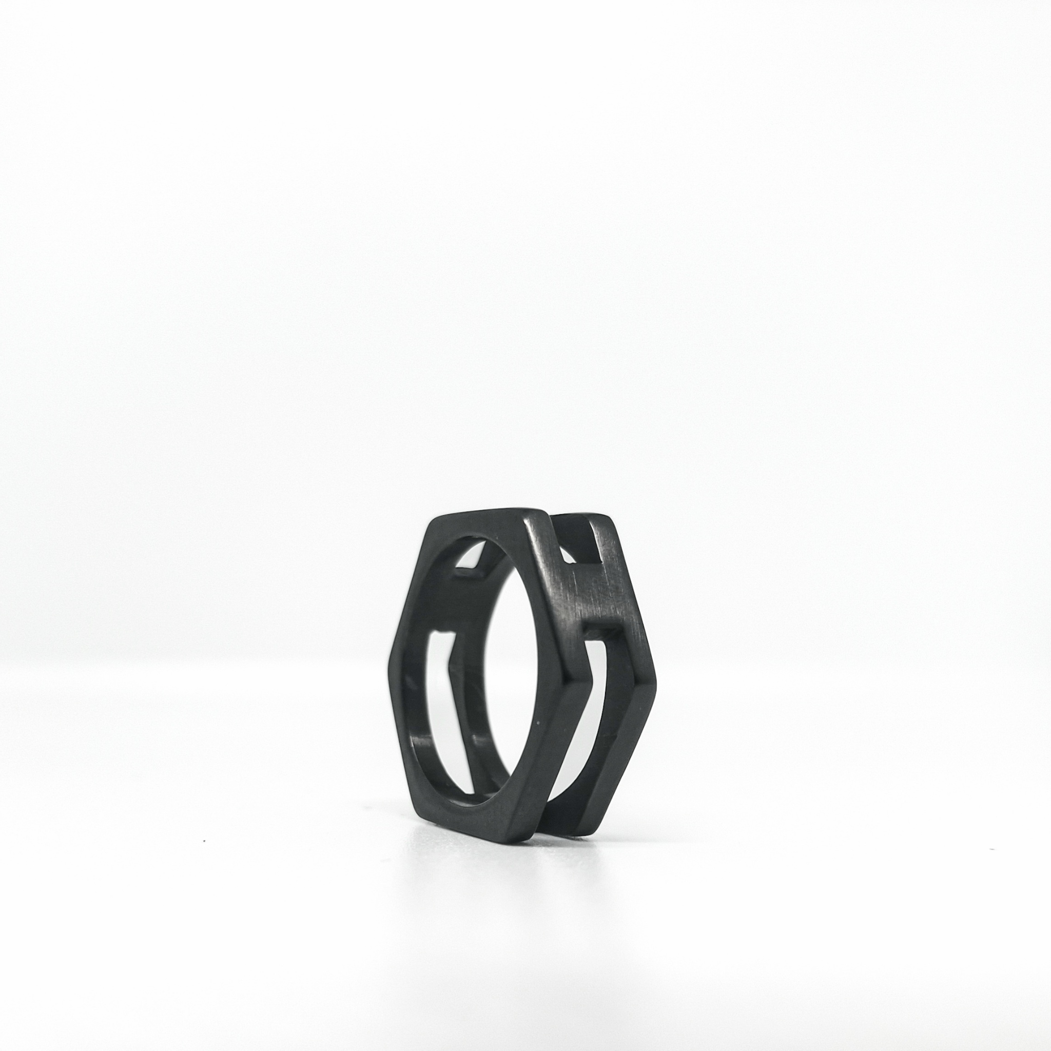 Black hexagon shape ring